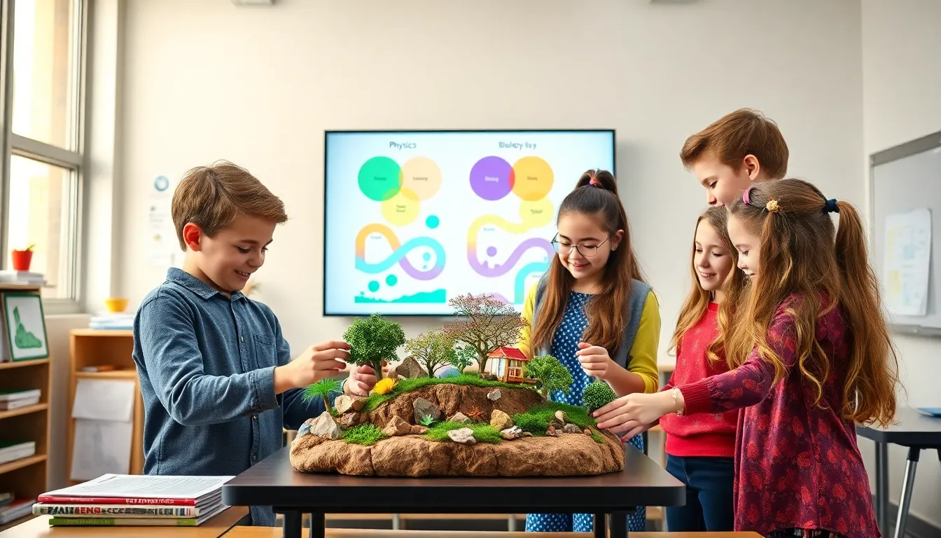 students collaborating on integrated science concepts in a modern classroom.